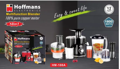 مجموعة خلاط هوفمانز 10 في 1 بقوة 1800 واط تقدم لك كل ما تحتاجه للعصر، الخلط، والتقطيع في حزمة واحدة!