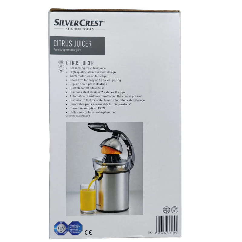عصارة حمضيات كهربائية سيلفر كريست التجارية، مثالية لعصر البرتقال والجريب فروت، بقدرة 130 واط.