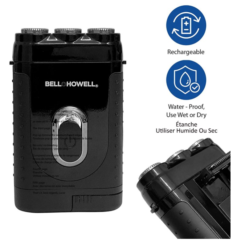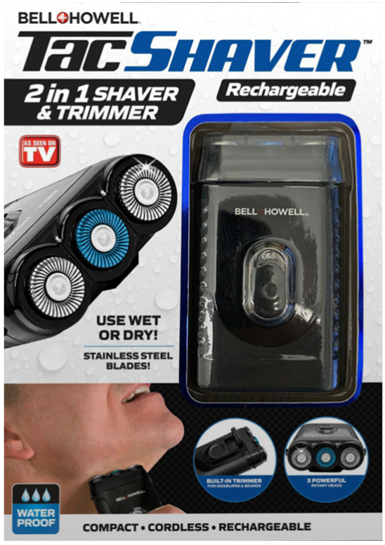 - محتوى التعبئة: 1 ماكينة حلاقة Tac Bell+Howell مع مقص مدمج وقابلة للشحن
