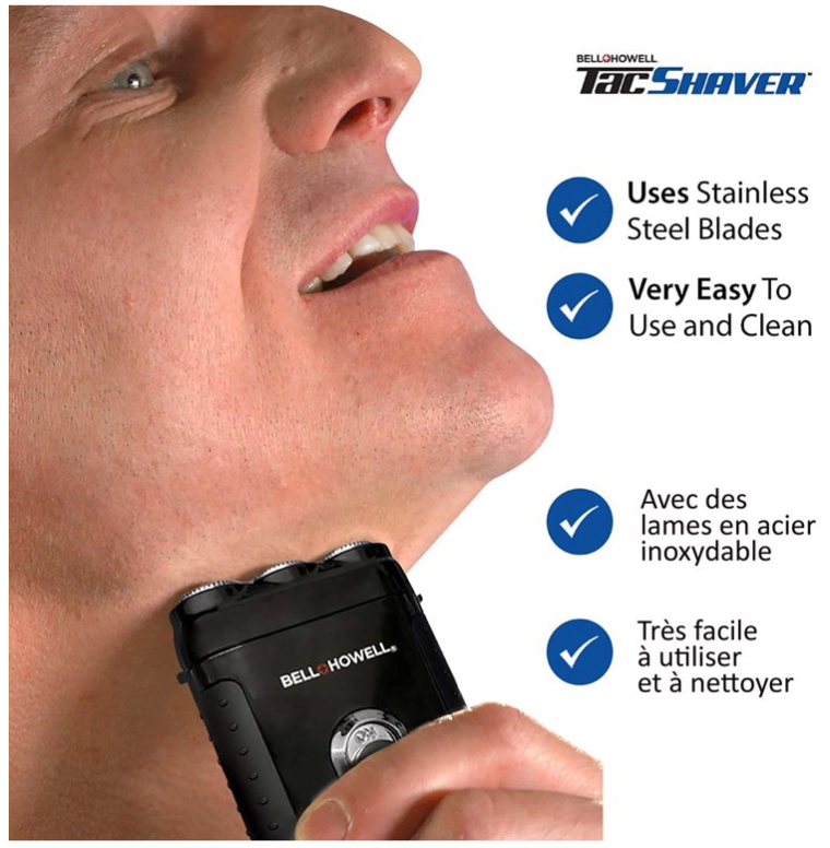 تجمع ماكينة الحلاقة Bell + Howell tac shaver™ بين دقة الشفرة وراحة الاستخدام الكهربائي. إنها سريعة وسهلة للاستخدام المنزلي وتضمن حلاقة ناعمة دائمًا. تعمل بكفاءة في الرطب أو الجاف، مما يوفر حلاقة مثالية في أي وقت. بفضل التكنولوجيا الدقيقة، تأتي بحجم أصغر من بطاقة الائتمان لكنها توفر مساحة حلاقة مزدوجة وقوة مضاعفة مقارنة بالماكينات الكبيرة. كما أن tac shaver™ مقاومة تمامًا للماء، مما يتيح لك استخدامها حتى تحت الماء، مما يجعلها اختيارًا فريدًا في السوق.