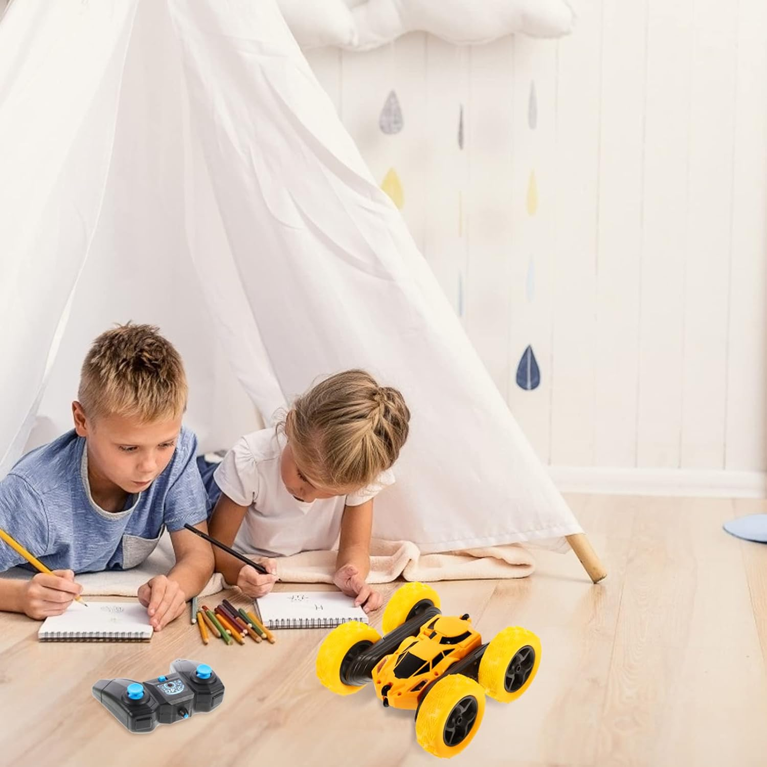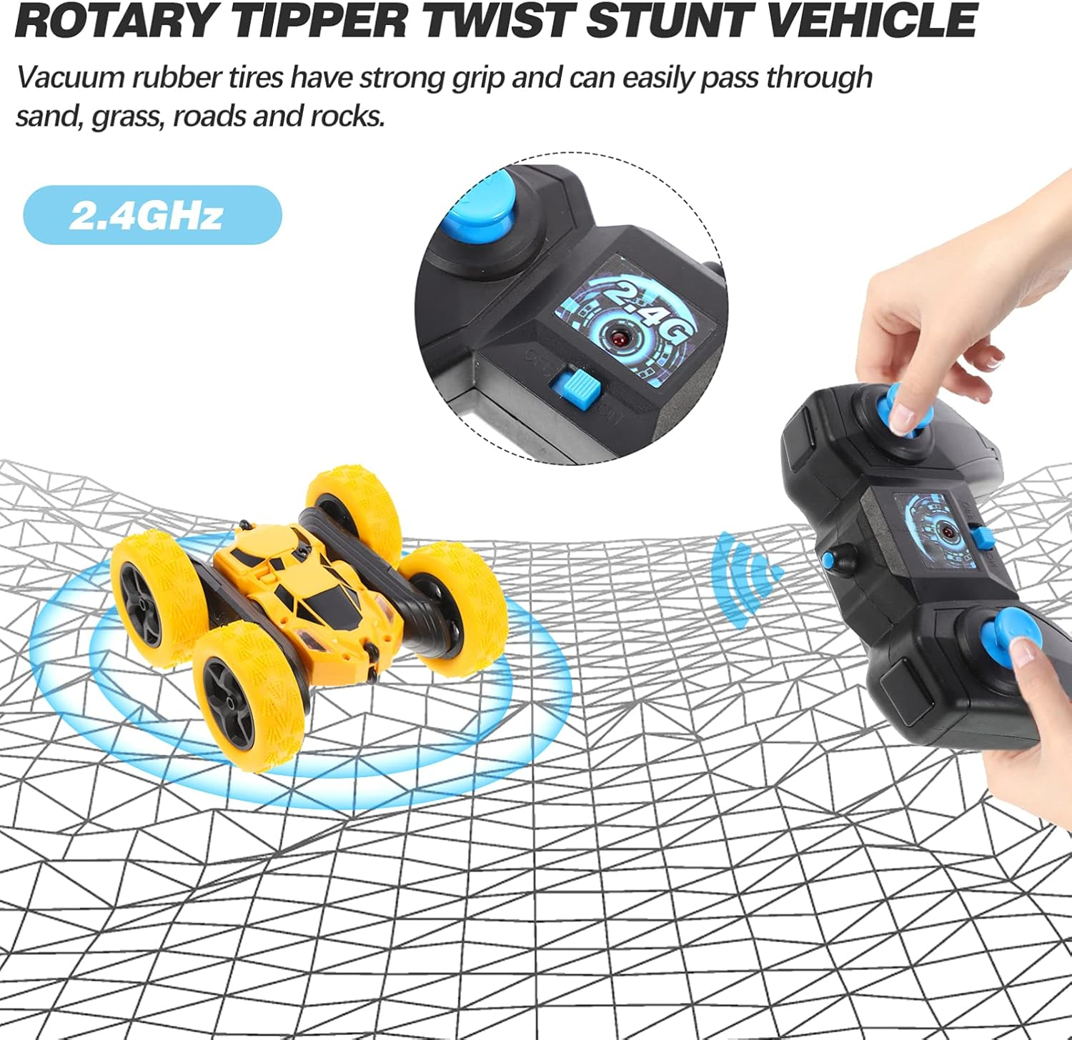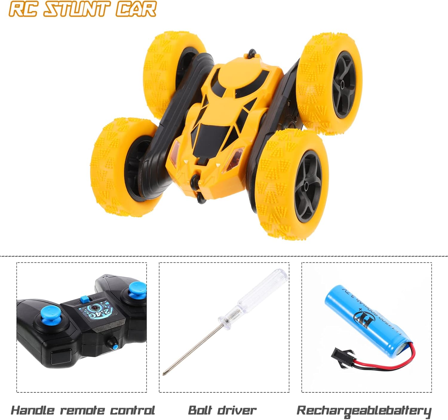 Kids Car Toy: Double sides designed,amazing 360° spins .This double side stunt car will show you how easy it is to rotate forward on the stairs without any harm. Moreover,this RC car can stunt flipping,forward, backward, turn left, turn right.