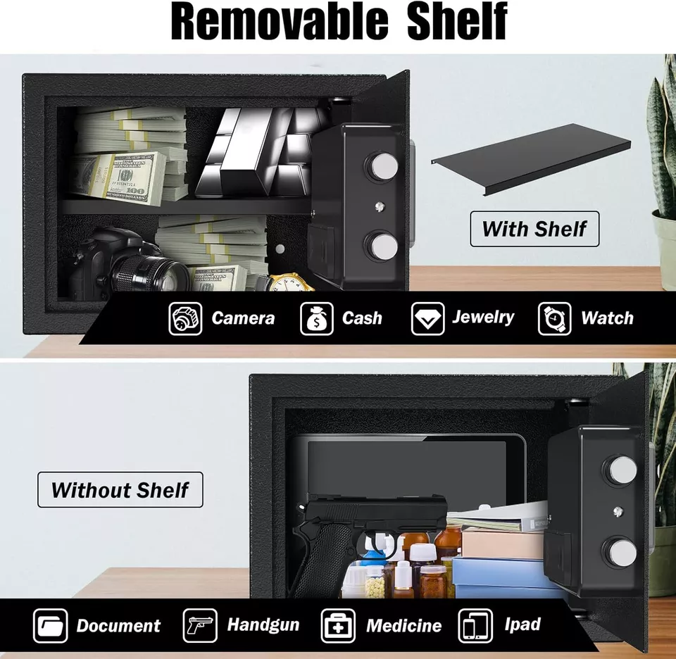 【مفتاح + كلمة مرور】طريقتين لفتح الخزنة! الفتحة السرية للخزنة تمنع الأطفال من فتحها عن طريق الخطأ. إذا نسيت كلمة المرور، يمكنك استخدام المفتاح الطارئ لفتح الخزنة. ملاحظة: لا تضع المفتاح داخل الخزنة!!