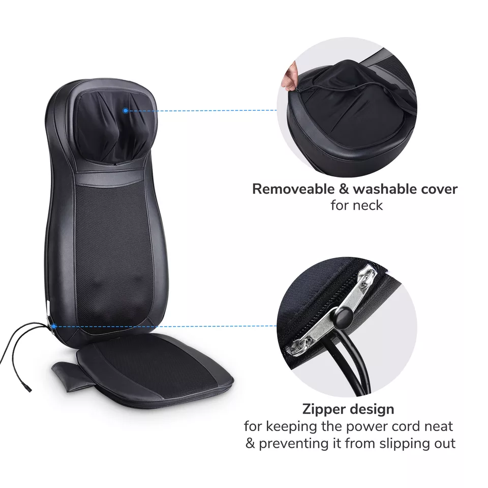 - 6 أزواج من نقاط التدليك - تأتي وسادة التدليك مع 6 أزواج من نقاط التدليك (4 للظهر و2 للرقبة) لمحاكاة حركة العجن كما يفعل معالج حقيقي، مما يساعد في تخفيف توتر وآلام العضلات في الظهر والرقبة والفخذين. مثالية للاسترخاء في المنزل أو المكتب بعد يوم شاق.