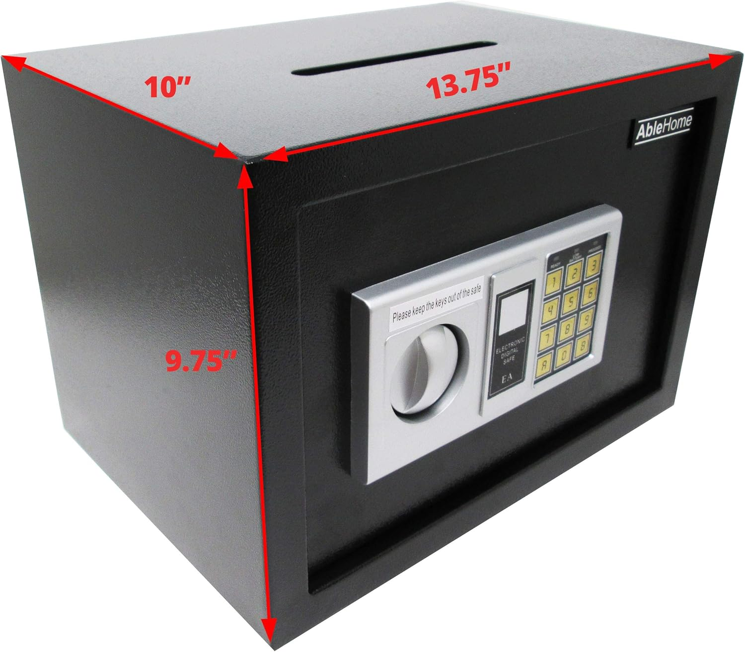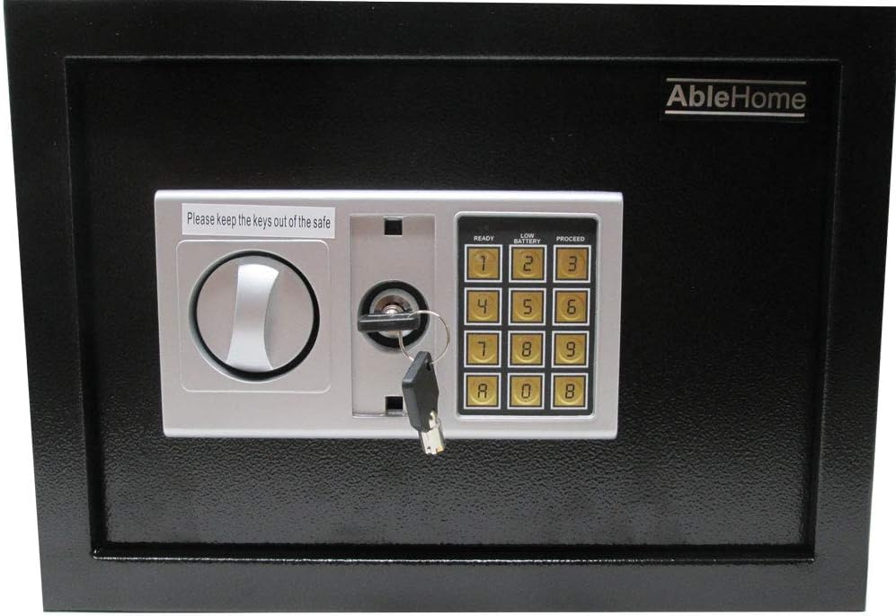 يتميز قفل AbleHome بإمكانية الدخول الرقمي مع مفتاح رئيسي للحالات الطارئة. يمكن برمجة أرقام PIN من 3 إلى 8 أرقام، ويحتوي على قفل مخفي مع مفتاحين. مصنوع من فولاذ مقوى بسمك سميك، ويتضمن 2 رف داخل الخزنة ونظام دبابيس مزدوجة من كروم الفولاذ الثقيل بسمك 3/4 بوصة. يمكن تثبيته على الحائط أو الأرضية، مع 4 براغي تثبيت مرفقة.