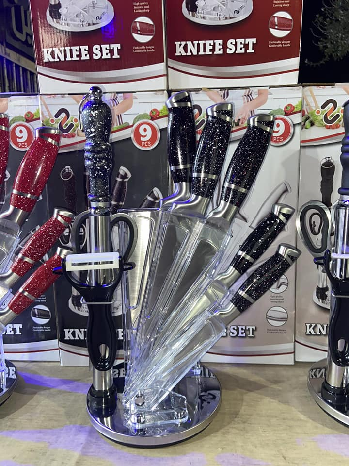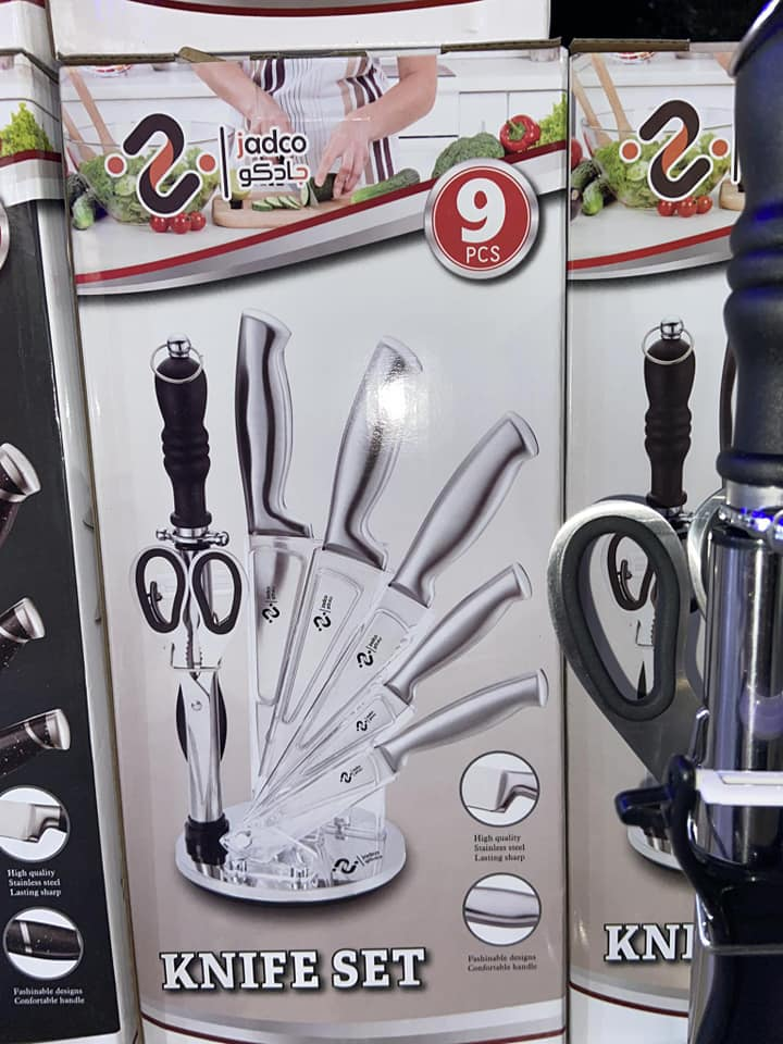 مجموعة سكاكين مطبخ أنيقة وعملية لسهولة الاستخدام. سهلة العناية، لكنها غير موصى بها للغسيل الآلي.